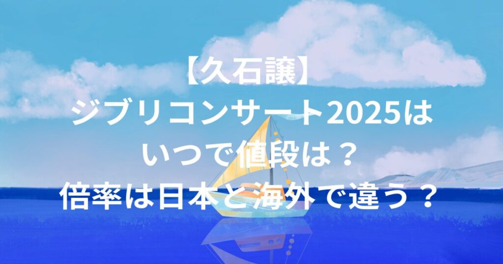 世界でも人気の久石譲さんのジブリコンサート! チケット入手困難と言われていますが、ファンであれば一度は行ってみたいですよね! そこで今回は、【久石譲】 ジブリコンサート2025はいつで値段は?海外より日本が高い!を紹介していきます。 【久石譲】 ... -
