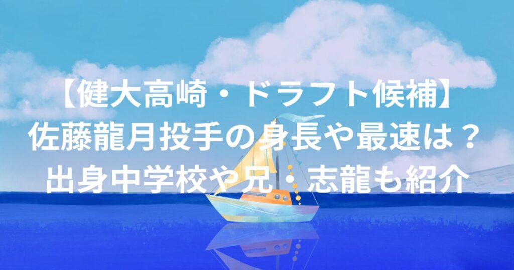 ドラフト候補で有名な、超強豪・健大高崎が誇る凄いエースの佐藤龍月(さとうりゅうが)投手! 小学校時代から日本トップクラスのサウスポーで、中学時代の東京城南ボーイズでは侍ジャパンにも選出されました。 また佐藤龍月投手の兄も、健大高崎で大活躍... -