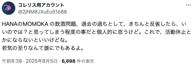 MOMOKAさんの未成年飲酒疑惑で、SNSでは様々な声が見られました。