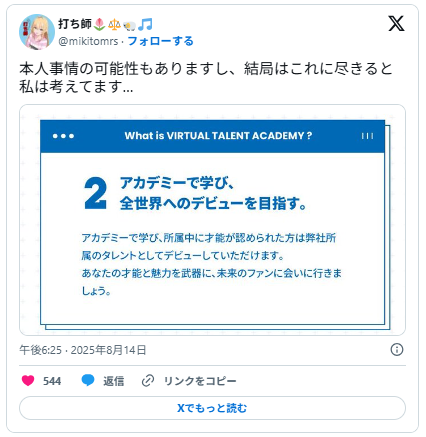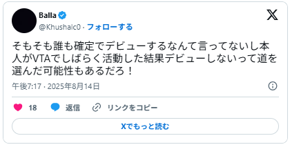 「過去のVTA生脱退と似てる流れ」と冷静に分析する人もいて、みんな気になる話題として様々な意見が出ています。