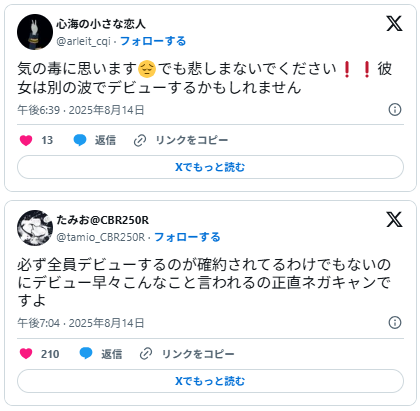 一方、5人でのデビューを期待していたファンの思いや、よいゆめメンバーとの関係を心配する声も。