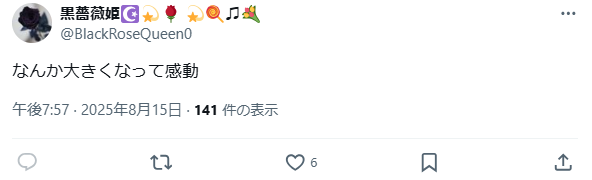 ↑コニカローレル推しだったリスナーさんがXにて「なんか大きくなって感動」とポストしています。