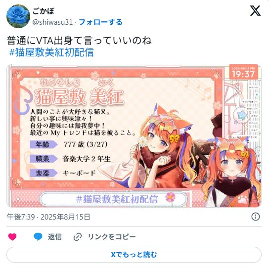 ただ、猫屋敷美紅は明らかに配信慣れしている雰囲気があり、VTA所属前から配信活動をしていたのでは?