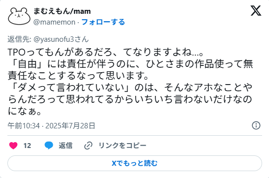 「キャラクターをお借りする」と言う謙虚さが欠けている、