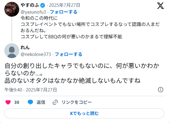 しかし、公共のイベントでコスプレはルール的に問題なくても「モラル的にどうなのか」といった批判や議論がネットで起きました。