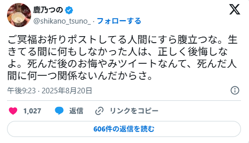 歌手のluzさんの訃報のあとに、鹿乃つのさんがXに投稿をします。