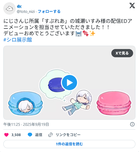 配信EDアニメーションの担当は、ととさんです。