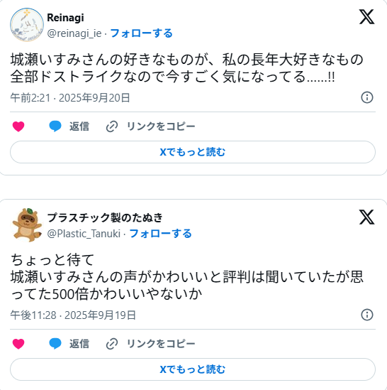 「すぷれあ」の最年少メンバー、城瀬いすみさんに対するSNSの反応はコチラです↓