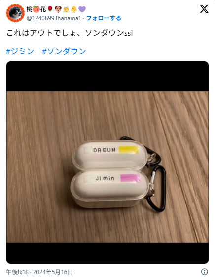 2024年5月、自身のSNSに「DA EUN」「JI MIN」と書かれたイヤホンケース、BTSグッズのTシャツ、自身と思しき映像を投稿