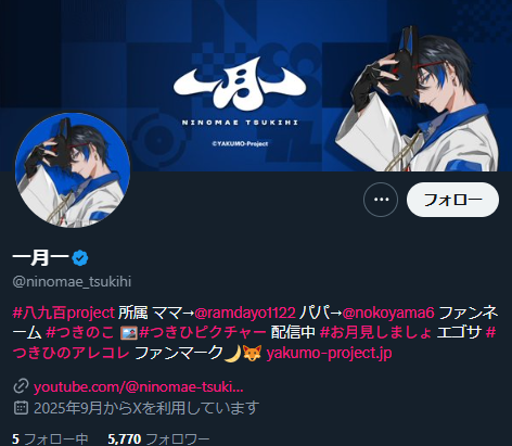 現在、新設されたばかりのVTuber事務所八九百Projectには2名のVTuberが所属しており、天道サンさんともう一人が一月一(にのまえ つきひ)さんというVTuberです。