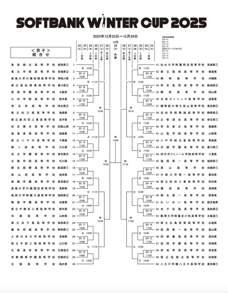 ウインターカップ2025の出場校と組み合わせはコチラです↓